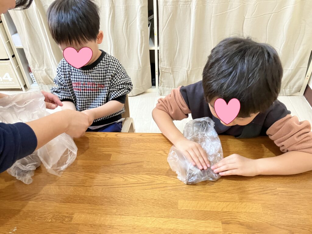 「お行儀悪い!!」と、思われがちですが、硬い、柔らかい、どれくらい口に入るか、掴むときにはどのくらいの力げあ必要か・・・赤ちゃんは、体感することで身に着けていきます。とても大切な食べ方と言えますね!!
