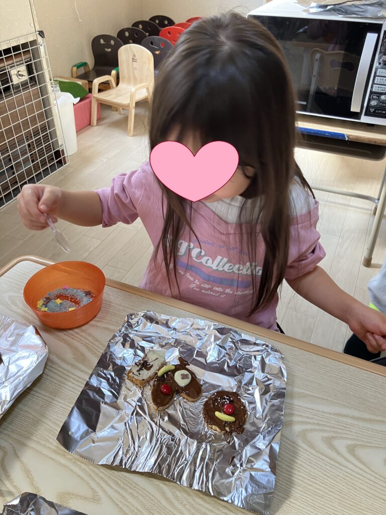 食べこぼしや、窒息のリスクを考えて、食べ物を一口サイズにする傾向が見られますが、ある程度大きい食べ物を前歯でかじることも大切です。