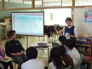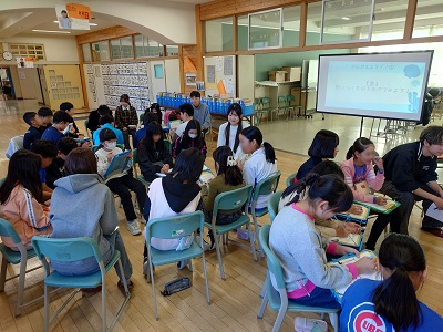 校内での身近なプラスチック製品探しや石油は何でできているかクイズを行ったり、海ごみ削減のためにできる事を話し合うなど、小学生共々参加したゼミ生にとっても有意義な体験となりました。