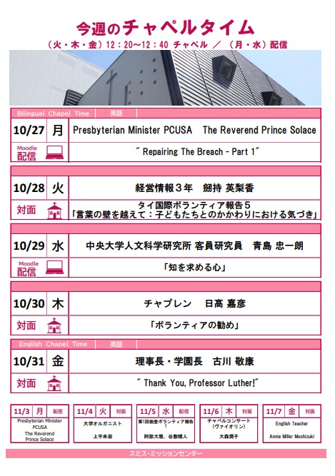 | 2025.10.24 | 来週のチャペルタイムのお知らせ
