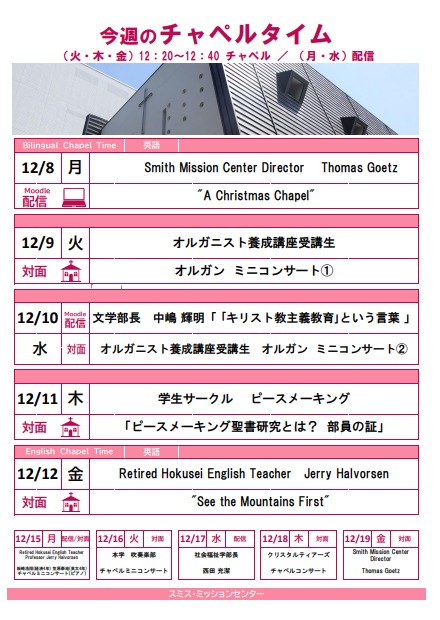 今週のチャペルタイムのお知らせ