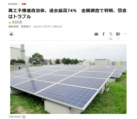 経済学部 経済学科 藤井 康平 研究室が、一橋大学・朝日新聞社・名古屋大学と共同で行った「第4回全国市区町村再生可能エネルギー実態調査」に関する記事が12月2日の朝日新聞全国版のトップニュースに掲載されました。