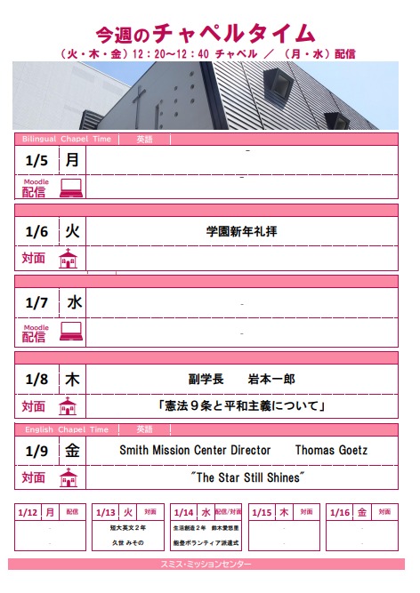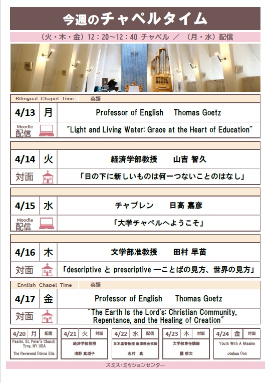 今週のチャペルタイム