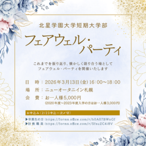 北星学園大学短期大学部フェアウェル・パーティ開催のお知らせ