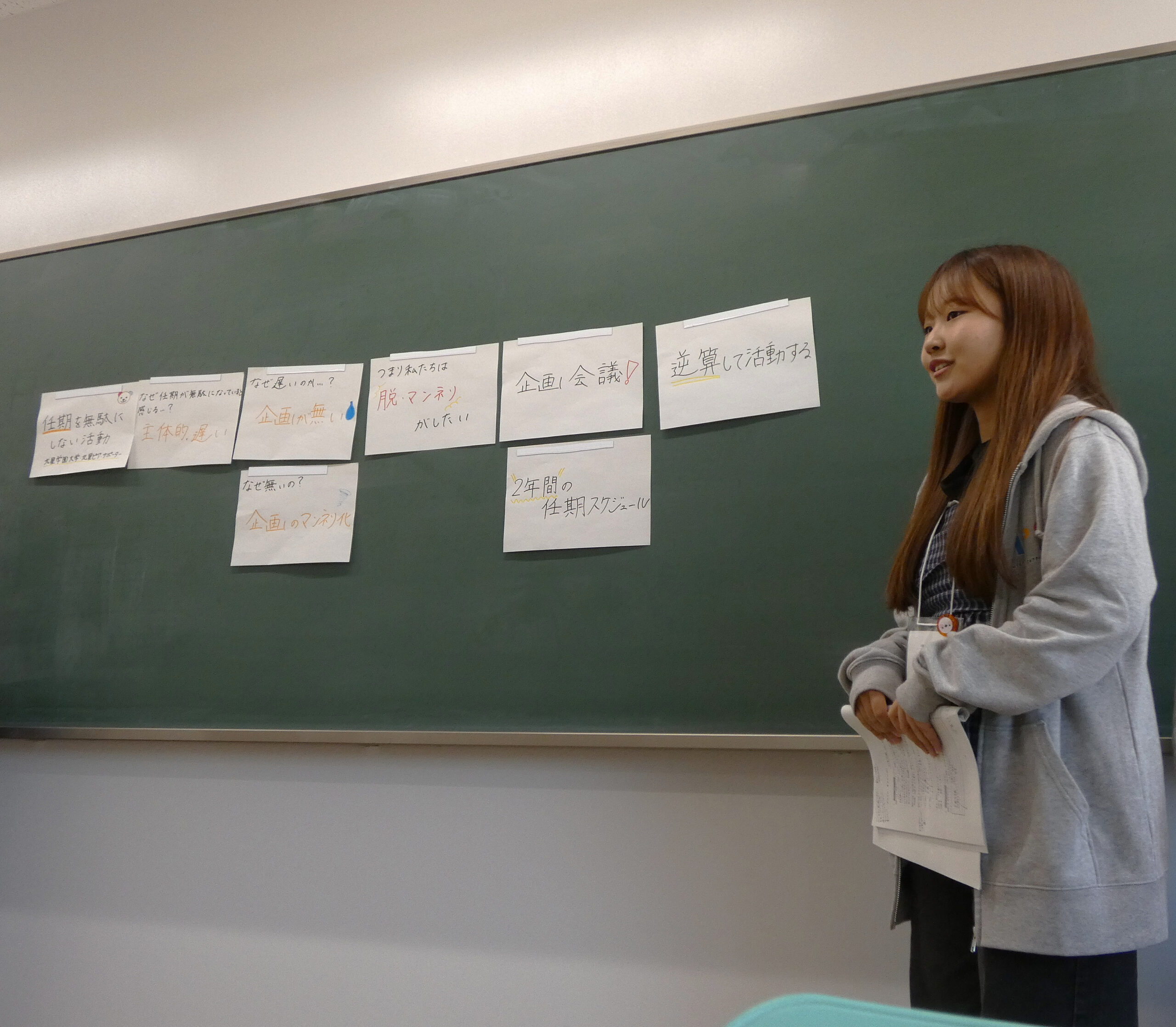また、今回の経験から、他団体との任期や活動期間の違いを実感しました。他団体では1年生から活動をしているところが多い中、北星ピア・サポーターは、2年間の任期が2年生から始まります。このようなことを知り、特色ある任期をうまく活かし、「限られた任期を無駄にしたくない!」という意識が強くなりました。ぴあのわの学生セッションにおいては、この「任期」というものをテーマに北星ピア・サポーターとして課題や解決策について発表も行うことができました。